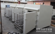 (1)烘干工作時間12小時,烘干溫度120℃可調(diào)。預計產(chǎn)能為600Kg/車。產(chǎn)品采用托盤平鋪方式放置。